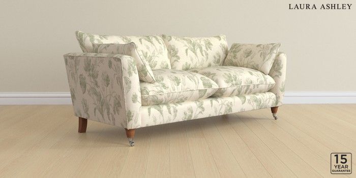 6.12.1 Buy Casterton by Laura Ashley 3 Seater Sofa Gosford Weave Sage Green Low Chrome Castor - Teak from the Laura Ashley online shop Click here to use our website with more accessibility support, for example screen readers