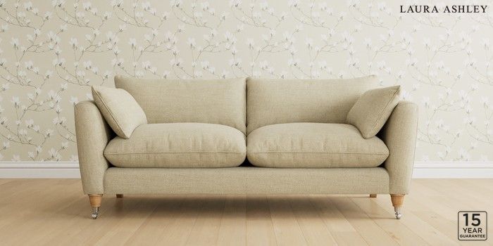 6.12.13 Buy Casterton by Laura Ashley 3 Seater Sofa Harley Natural Low Chrome Castor - Light Oak from the Laura Ashley online shop Click here to use our website with more accessibility support, for example screen readers