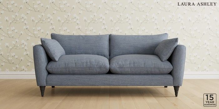 6.12.13 Buy Casterton by Laura Ashley 3 Seater Sofa Harley Seaspray Blue Low Turned - Black from the Laura Ashley online shop Click here to use our website with more accessibility support, for example screen readers