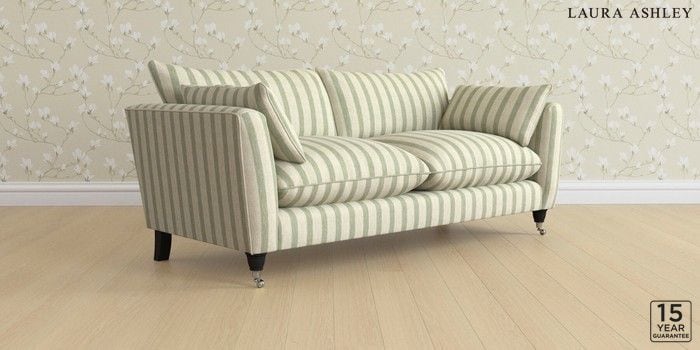 6.12.1 Buy Casterton by Laura Ashley 3 Seater Sofa Kinsham Stripe Hedgerow Green Low Chrome Castor - Black from the Laura Ashley online shop Click here to use our website with more accessibility support, for example screen readers