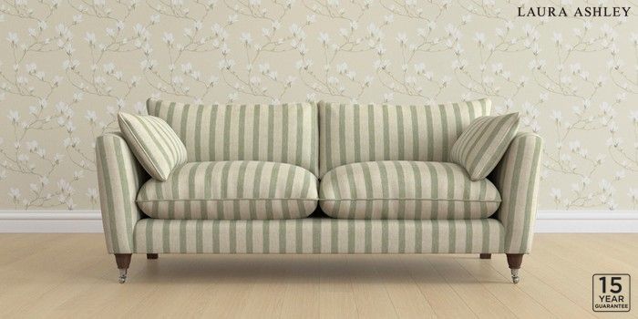 6.12.1 Buy Casterton by Laura Ashley 3 Seater Sofa Kinsham Stripe Hedgerow Green Low Chrome Castor - Chestnut from the Laura Ashley online shop Click here to use our website with more accessibility support, for example screen readers