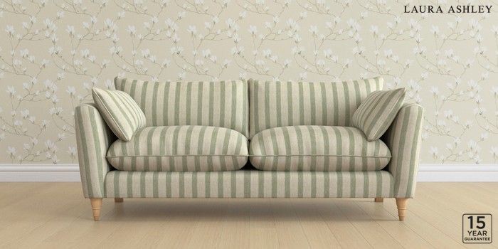 6.12.1 Buy Casterton by Laura Ashley 3 Seater Sofa Kinsham Stripe Hedgerow Green Low Turned - Light Oak from the Laura Ashley online shop Click here to use our website with more accessibility support, for example screen readers