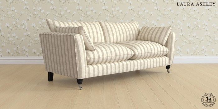 6.12.1 Buy Casterton by Laura Ashley 3 Seater Sofa Kinsham Stripe Natural Low Chrome Castor - Black from the Laura Ashley online shop Click here to use our website with more accessibility support, for example screen readers