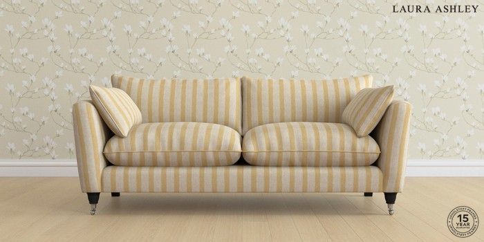 7.0.3 Buy Casterton by Laura Ashley 3 Seater Sofa Kinsham Stripe Ochre Yellow Low Chrome Castor - Black from the Laura Ashley online shop Click here to use our website with more accessibility support, for example screen readers