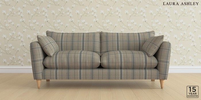 6.12.1 Buy Casterton by Laura Ashley 3 Seater Sofa Longstowe Check French Grey Low Turned - Light Oak from the Laura Ashley online shop Click here to use our website with more accessibility support, for example screen readers
