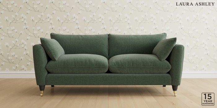 6.12.13 Buy Casterton by Laura Ashley 3 Seater Sofa Nantmor Fern Green Low Brass Castor - Black from the Laura Ashley online shop Click here to use our website with more accessibility support, for example screen readers