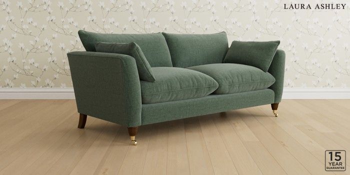 6.12.13 Buy Casterton by Laura Ashley 3 Seater Sofa Nantmor Fern Green Low Brass Castor - Teak from the Laura Ashley online shop Click here to use our website with more accessibility support, for example screen readers