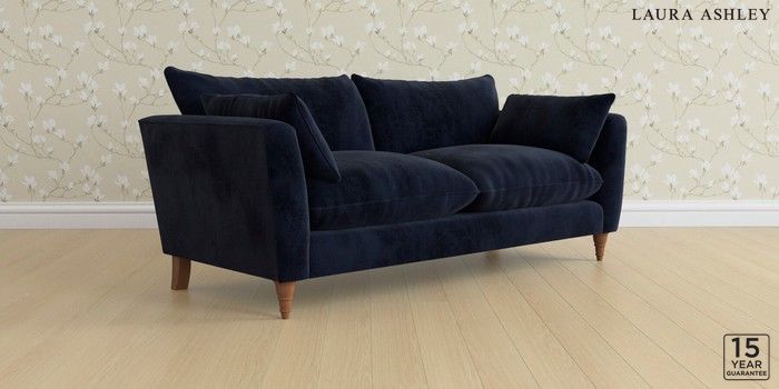 6.12.13 Buy Casterton by Laura Ashley 3 Seater Sofa Orla Midnight Navy Low Turned - Teak from the Laura Ashley online shop Click here to use our website with more accessibility support, for example screen readers
