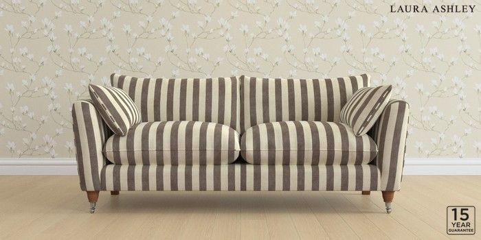 6.12.1 Buy Casterton by Laura Ashley 3 Seater Sofa Orla Stripe Dark Truffle Natural Low Chrome Castor - Teak from the Laura Ashley online shop Click here to use our website with more accessibility support, for example screen readers