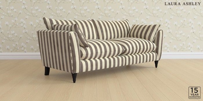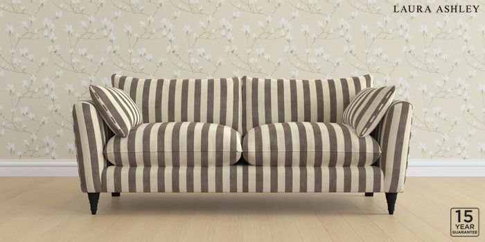 6.12.1 Buy Casterton by Laura Ashley 3 Seater Sofa Orla Stripe Dark Truffle Natural Low Turned - Black from the Laura Ashley online shop Click here to use our website with more accessibility support, for example screen readers
