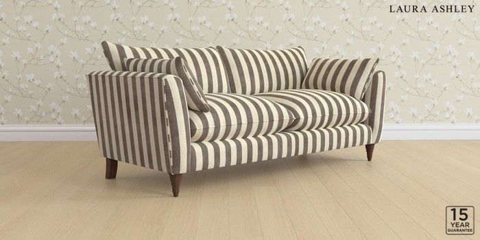 6.12.1 Buy Casterton by Laura Ashley 3 Seater Sofa Orla Stripe Dark Truffle Natural Low Turned - Chestnut from the Laura Ashley online shop Click here to use our website with more accessibility support, for example screen readers
