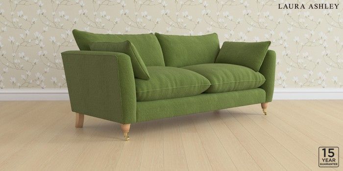 6.12.1 Buy Casterton by Laura Ashley 3 Seater Sofa Tichwell Olive Green Low Brass Castor - Light Oak from the Laura Ashley online shop Click here to use our website with more accessibility support, for example screen readers