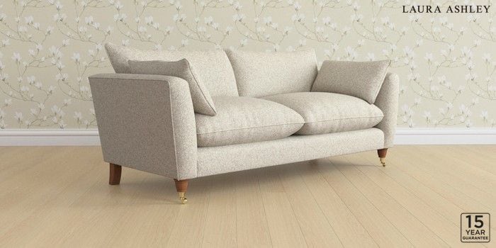 6.12.1 Buy Casterton by Laura Ashley 3 Seater Sofa Tichwell Stone Natural Low Brass Castor - Teak from the Laura Ashley online shop Click here to use our website with more accessibility support, for example screen readers