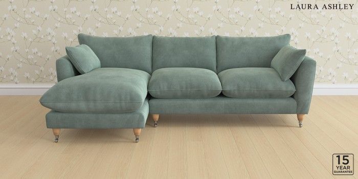 6.12.1 Buy Casterton by Laura Ashley Medium Sofa Chaise - Left Hand Ailsworth Fern Green Low Chrome Castor - Light Oak from the Laura Ashley online shop Click here to use our website with more accessibility support, for example screen readers