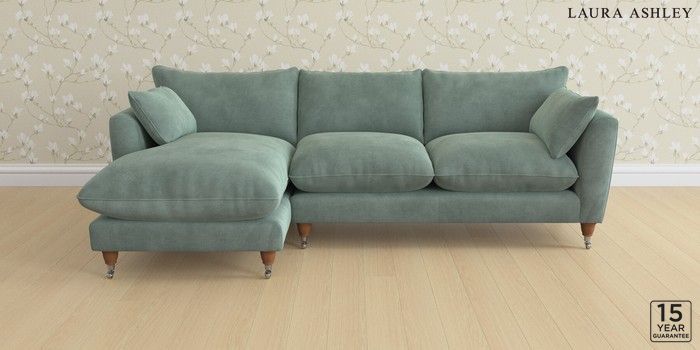 6.12.1 Buy Casterton by Laura Ashley Medium Sofa Chaise - Left Hand Ailsworth Fern Green Low Chrome Castor - Teak from the Laura Ashley online shop Click here to use our website with more accessibility support, for example screen readers