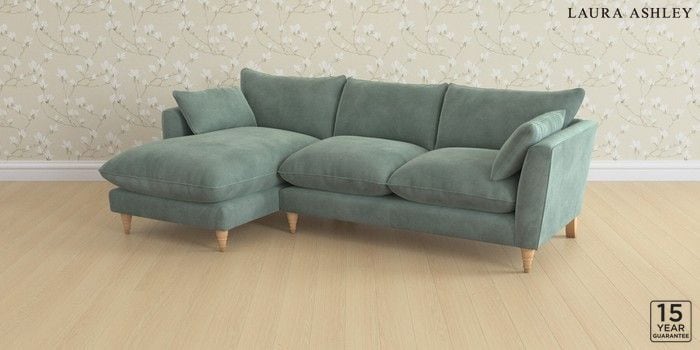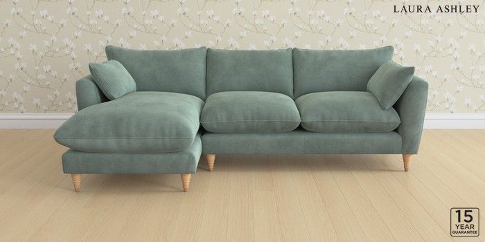 6.12.1 Buy Casterton by Laura Ashley Medium Sofa Chaise - Left Hand Ailsworth Fern Green Low Turned - Light Oak from the Laura Ashley online shop Click here to use our website with more accessibility support, for example screen readers