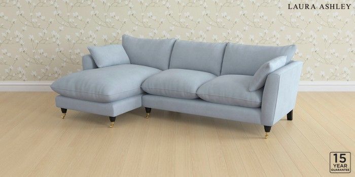 6.12.1 Buy Casterton by Laura Ashley Medium Sofa Chaise - Left Hand Ailsworth Newport Blue Low Brass Castor - Black from the Laura Ashley online shop Click here to use our website with more accessibility support, for example screen readers