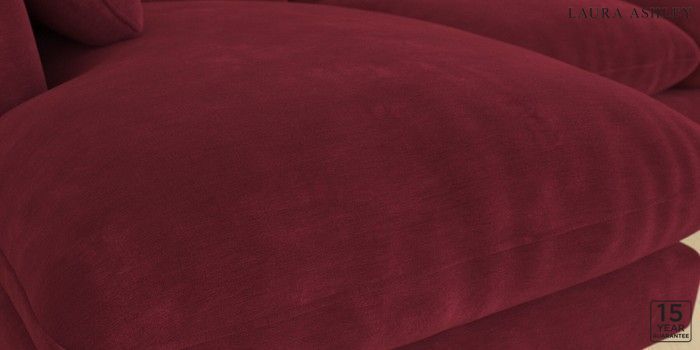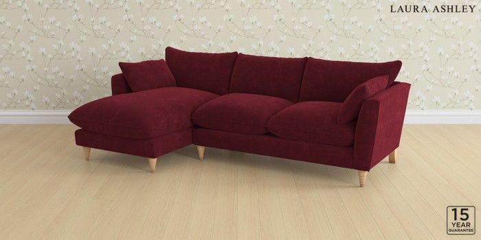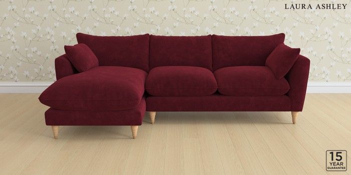 6.12.1 Buy Casterton by Laura Ashley Medium Sofa Chaise - Left Hand Alwyn Velvet Burgundy Red Low Turned - Light Oak from the Laura Ashley online shop Click here to use our website with more accessibility support, for example screen readers
