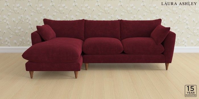 6.12.1 Buy Casterton by Laura Ashley Medium Sofa Chaise - Left Hand Alwyn Velvet Burgundy Red Low Turned - Teak from the Laura Ashley online shop Click here to use our website with more accessibility support, for example screen readers