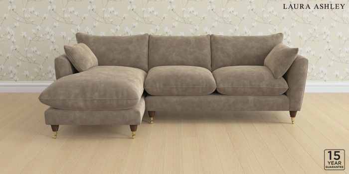 6.12.13 Buy Casterton by Laura Ashley Medium Sofa Chaise - Left Hand Alwyn Velvet Truffle Natural Low Brass Castor - Chestnut from the Laura Ashley online shop Click here to use our website with more accessibility support, for example screen readers