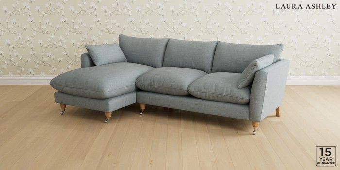 6.12.1 Buy Casterton by Laura Ashley Medium Sofa Chaise - Left Hand Anneliese Seaspray Blue Low Chrome Castor - Light Oak from the Laura Ashley online shop Click here to use our website with more accessibility support, for example screen readers