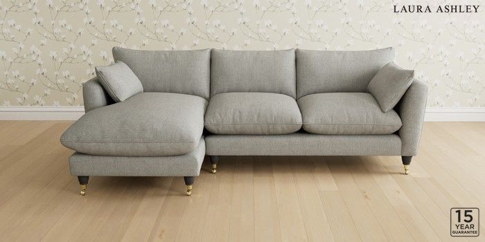6.12.1 Buy Casterton by Laura Ashley Medium Sofa Chaise - Left Hand Anneliese Steel Grey Low Brass Castor - Black from the Laura Ashley online shop Click here to use our website with more accessibility support, for example screen readers