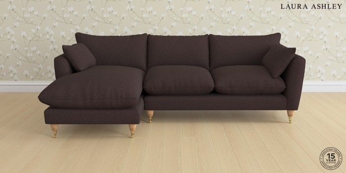 7.0.3 Buy Casterton by Laura Ashley Medium Sofa Chaise - Left Hand Bainton Chocolate Brown Low Brass Castor - Light Oak from the Laura Ashley online shop Click here to use our website with more accessibility support, for example screen readers