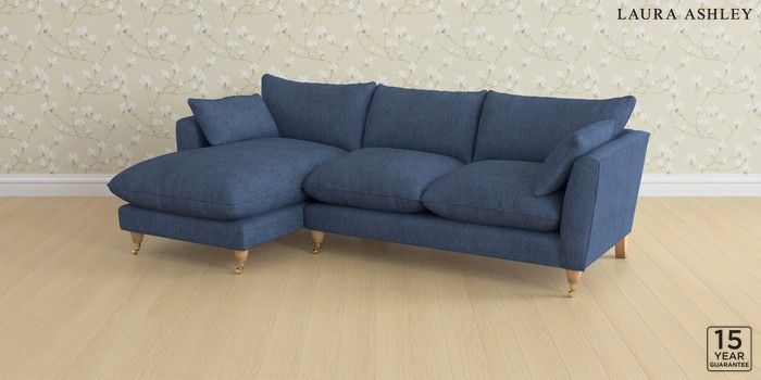 6.12.1 Buy Casterton by Laura Ashley Medium Sofa Chaise - Left Hand Bainton Midnight Navy Low Brass Castor - Light Oak from the Laura Ashley online shop Click here to use our website with more accessibility support, for example screen readers