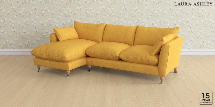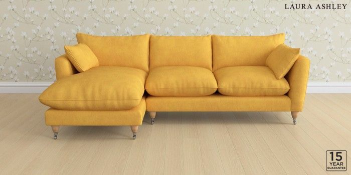 6.12.13 Buy Casterton by Laura Ashley Medium Sofa Chaise - Left Hand Bainton Ochre Yellow Low Chrome Castor - Light Oak from the Laura Ashley online shop Click here to use our website with more accessibility support, for example screen readers