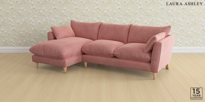 6.12.1 Buy Casterton by Laura Ashley Medium Sofa Chaise - Left Hand Bainton Old Rose Pink Low Turned - Light Oak from the Laura Ashley online shop Click here to use our website with more accessibility support, for example screen readers