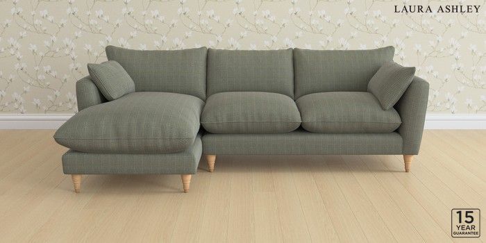 6.12.1 Buy Casterton by Laura Ashley Medium Sofa Chaise - Left Hand Birchgrove Check Olive Green Low Turned - Light Oak from the Laura Ashley online shop Click here to use our website with more accessibility support, for example screen readers