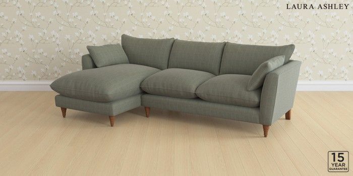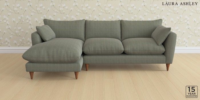 6.12.1 Buy Casterton by Laura Ashley Medium Sofa Chaise - Left Hand Birchgrove Check Olive Green Low Turned - Teak from the Laura Ashley online shop Click here to use our website with more accessibility support, for example screen readers