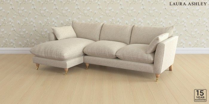6.12.1 Buy Casterton by Laura Ashley Medium Sofa Chaise - Left Hand Borwick Natural Low Brass Castor - Light Oak from the Laura Ashley online shop Click here to use our website with more accessibility support, for example screen readers