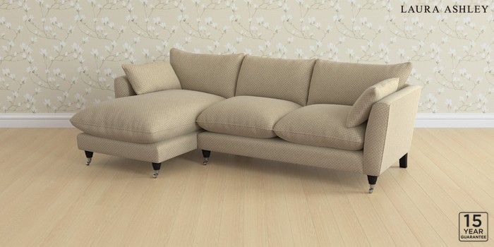 6.12.13 Buy Casterton by Laura Ashley Medium Sofa Chaise - Left Hand Chequers Hazelnut Natural Low Chrome Castor - Black from the Laura Ashley online shop Click here to use our website with more accessibility support, for example screen readers