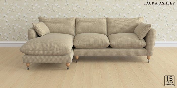 6.12.1 Buy Casterton by Laura Ashley Medium Sofa Chaise - Left Hand Chequers Hazelnut Natural Low Chrome Castor - Light Oak from the Laura Ashley online shop Click here to use our website with more accessibility support, for example screen readers