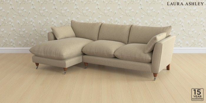 6.12.1 Buy Casterton by Laura Ashley Medium Sofa Chaise - Left Hand Chequers Hazelnut Natural Low Chrome Castor - Teak from the Laura Ashley online shop Click here to use our website with more accessibility support, for example screen readers