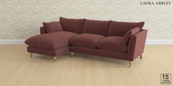 6.12.1 Buy Casterton by Laura Ashley Medium Sofa Chaise - Left Hand Edwin Chenille Burgundy Red Low Chrome Castor - Light Oak from the Laura Ashley online shop Click here to use our website with more accessibility support, for example screen readers