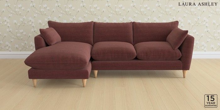 6.12.1 Buy Casterton by Laura Ashley Medium Sofa Chaise - Left Hand Edwin Chenille Burgundy Red Low Turned - Light Oak from the Laura Ashley online shop Click here to use our website with more accessibility support, for example screen readers