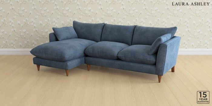 6.12.1 Buy Casterton by Laura Ashley Medium Sofa Chaise - Left Hand Edwin Chenille Seaspray Blue Low Turned - Teak from the Laura Ashley online shop Click here to use our website with more accessibility support, for example screen readers