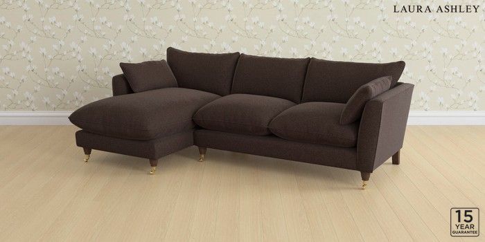 6.12.1 Buy Casterton by Laura Ashley Medium Sofa Chaise - Left Hand Harley Chestnut Brown Low Brass Castor - Chestnut from the Laura Ashley online shop Click here to use our website with more accessibility support, for example screen readers