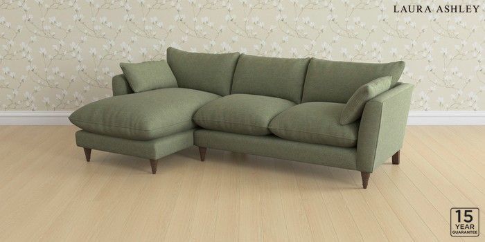 6.12.1 Buy Casterton by Laura Ashley Medium Sofa Chaise - Left Hand Harley Moss Green Low Turned - Chestnut from the Laura Ashley online shop Click here to use our website with more accessibility support, for example screen readers