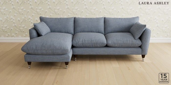6.12.1 Buy Casterton by Laura Ashley Medium Sofa Chaise - Left Hand Harley Seaspray Blue Low Chrome Castor - Chestnut from the Laura Ashley online shop Click here to use our website with more accessibility support, for example screen readers