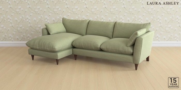 6.12.1 Buy Casterton by Laura Ashley Medium Sofa Chaise - Left Hand Kinsham Hedgerow Green Low Turned - Chestnut from the Laura Ashley online shop Click here to use our website with more accessibility support, for example screen readers