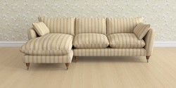 7.0.3 Buy Casterton by Laura Ashley Medium Sofa Chaise - Left Hand Kinsham Stripe Ochre Yellow Low Chrome Castor - Teak from the Laura Ashley online shop Click here to use our website with more accessibility support, for example screen readers