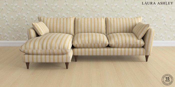 7.0.3 Buy Casterton by Laura Ashley Medium Sofa Chaise - Left Hand Kinsham Stripe Ochre Yellow Low Turned - Chestnut from the Laura Ashley online shop Click here to use our website with more accessibility support, for example screen readers