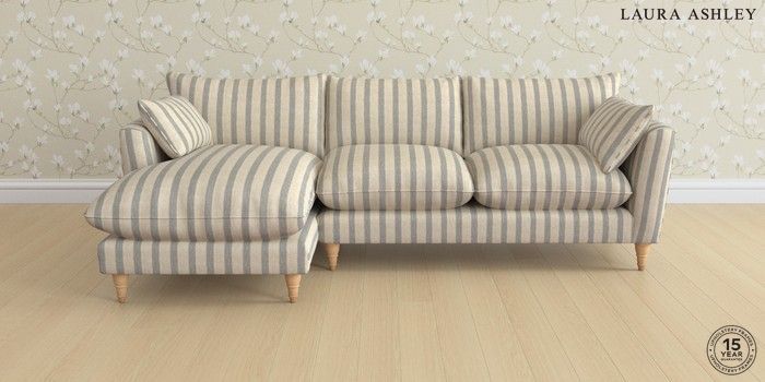 6.12.1 Buy Casterton by Laura Ashley Medium Sofa Chaise - Left Hand Kinsham Stripe Seaspray Blue Low Turned - Light Oak from the Laura Ashley online shop Click here to use our website with more accessibility support, for example screen readers