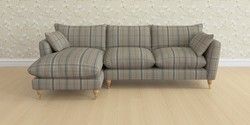 6.12.1 Buy Casterton by Laura Ashley Medium Sofa Chaise - Left Hand Longstowe Check French Grey Low Brass Castor - Light Oak from the Laura Ashley online shop Click here to use our website with more accessibility support, for example screen readers
