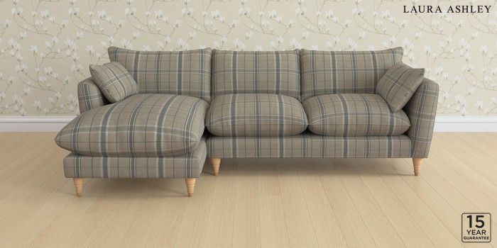 6.12.1 Buy Casterton by Laura Ashley Medium Sofa Chaise - Left Hand Longstowe Check French Grey Low Turned - Light Oak from the Laura Ashley online shop Click here to use our website with more accessibility support, for example screen readers