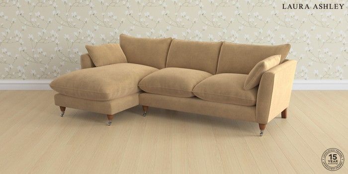 6.12.1 Buy Casterton by Laura Ashley Medium Sofa Chaise - Left Hand Lundar Chenille Caramel Natural Low Chrome Castor - Teak from the Laura Ashley online shop Click here to use our website with more accessibility support, for example screen readers