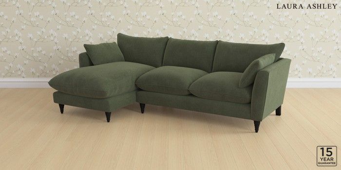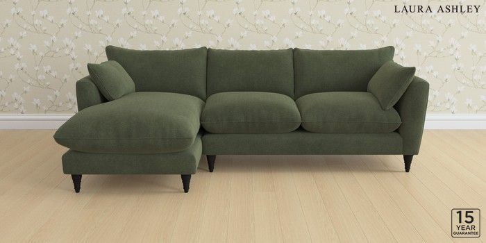 6.12.1 Buy Casterton by Laura Ashley Medium Sofa Chaise - Left Hand Lundar Chenille Ivy Green Low Turned - Black from the Laura Ashley online shop Click here to use our website with more accessibility support, for example screen readers